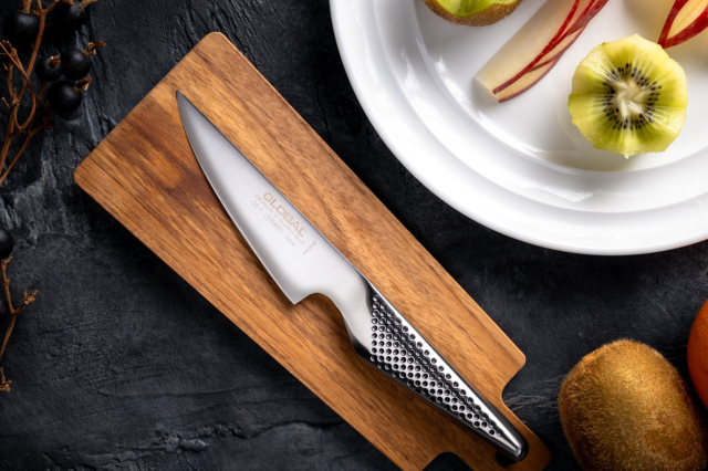 コンパクトなサイズ感で小回りが利き、食材を手にもっての皮むきもしやすく、また切っ先が尖っているため細工切りにも適しています。