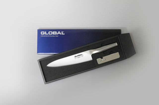 GLOBALスピードシャープナーは、ステンレス両刃包丁専用の簡易シャープナーです。包丁の切れ味が鈍り始めたら、軽く手前に10回程度引くことで、切れ味を一時的に蘇らせることが出来ます。簡易的な日常使い用としておすすめです。